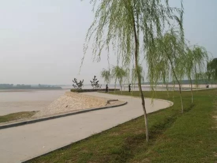 曹岗险工处,黄河河道由东西流向急转为南北流向,形成横河,河水急冲堤坝,形成险中之险,临背悬差为全河之最,世称黄河第一险工。
