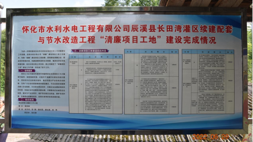 为进一步贯彻落实怀化市水务投资集团有限公司清廉建设工作部署,夯实员工清正廉洁思想根基,让工地也吹起“清廉风”,以风清气正从业环境助力项目建设跑出“加速度”。水利水电工程有限公司将辰溪县长田湾灌区续建配套与节水改造工程打造成“清廉项目工地”。